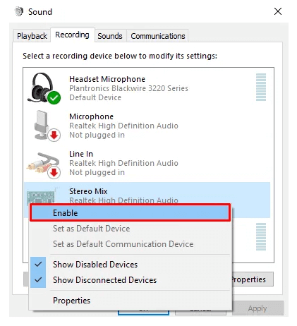 - Olanak vermekStereo karışımve onu değiştirVarsayılan mikrofon.