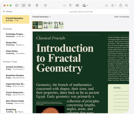En son MacOS güncellemesiyle Mac'iniz, Notlar arayüzünüzün tüm genişliğini alarak, bir PDF'yi tamamen kesintisiz olarak görüntüleme kolaylığından yararlanmanızı sağlar. Aralarında kolayca gezinmek için PDF sayfaları arasında tıklamanız yeterlidir.