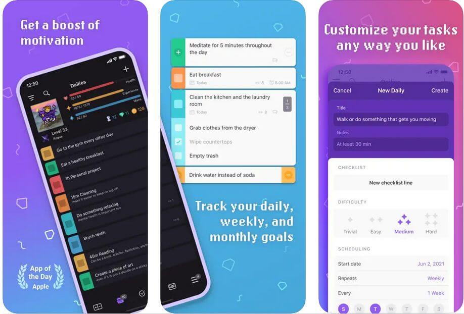 Bu uygulama fitness üzerine odaklanmasa da, Habitica hala egzersiz rutinlerinizi oyunlaştırmanın harika bir yoludur. Kendi görevlerinizi ekleyebileceğiniz bir alışkanlık izleyicisi olarak işlev görür ve daha sonra bunları tamamladığınızda karakterinizi yükseltmek için deneyim puanları kazanırsınız. Her seviye tamamlamanız için hedefler belirledi ve bunu yaptığınızda para kazanabilirsiniz. Bunlar, karakteriniz için eşyalarla kendinizi ödüllendirmek için kullanılabilir.