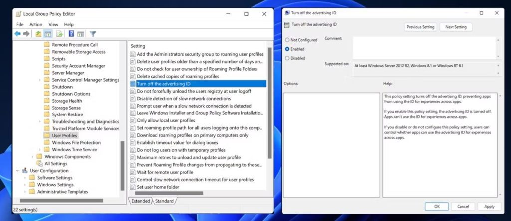 Hem sistem hem de kullanıcı ayarlarını yönetmeye yardımcı olan bir araç Windows Grubu ilkesidir. Reklamcılık kimliğini devre dışı bırakmak için nasıl kullanılacağını öğrenmek için aşağıda paylaşılan adımları öğrenin: