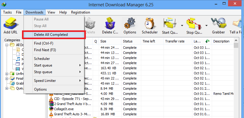 Ücretsiz Alan. IDM nesnelerinden indirilen diğer dosyaları silin ve IDM'de sıradaki nesneleri azaltır.