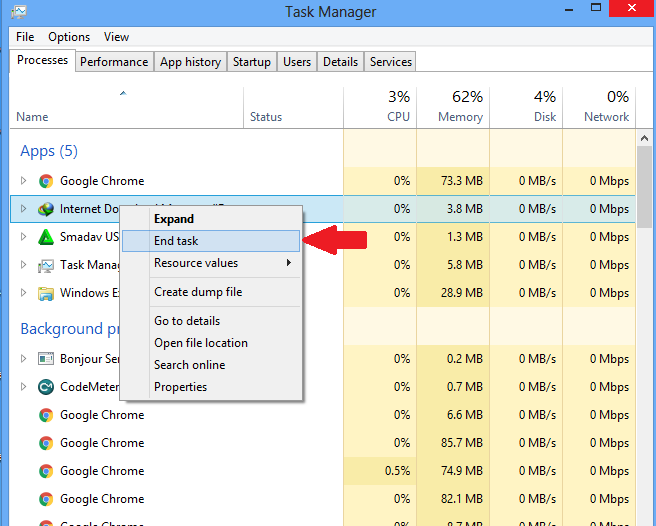 Bu diğer uygulamalar aynı anda indirilebilir. İnternet kullandıkları için daha iyi kapanıyor. Örneğin, PC uygulamalarını kapatın, RAM IDM'nizi kullanmanıza olanak tanır.