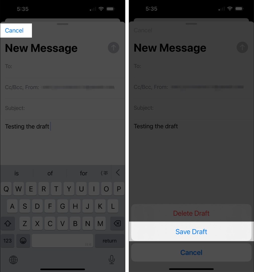 Postanızı hazırladıysanız, ancak daha sonra bitireceğinize karar verirseniz, sadece dokunabilirsinizİptal etmek→Taslağı kurtarHazır olduğunuzda; Taslaklar klasörüne gidin ve kaldığınız yerden alın.