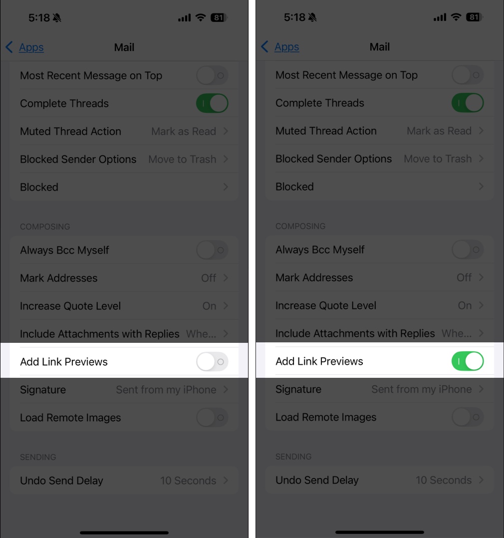Bu varsayılan olarak 10 saniyeye ayarlanır, ancak 20 veya 30 saniyeye ayarlayabilir veya özelliği kapatabilirsiniz. Bu konuda iPhone'unuzdaki e -postaların nasıl açılacağına dair makalemizde açıklandık.