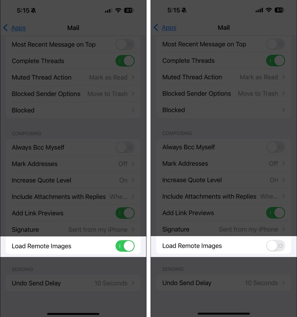 E -postalara harici görüntüleri yüklemek hücresel verilerinizi tüketebilir ve e -posta deneyiminizi yavaşlatabilir. Ayrıca, uzak görüntüler postanın kendisinin bir parçası olmadığından gizlilik endişesi olabilir. Postayı ne zaman görüntülediğinizde, medya sunucularından indirilir. Dolayısıyla, e -posta izleyicileri bir e -posta açtığınızı bilebilir.