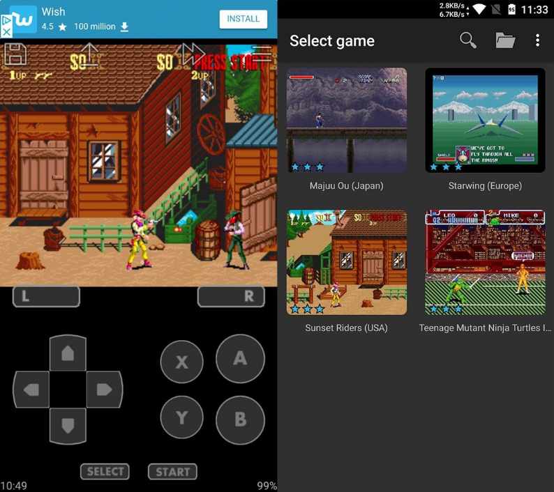 SNES9X ile Top 5 Super Nintendo Emülator seçimimize başlıyoruz ve diğer emülatörler için aynı şekilde Google Play Store'dan ücretsiz indirebilirsiniz, ancak bazı SNES emülatörü APK dosyası olarak indirilebilir. APK dosyalarını taşımaya aşina değilseniz, Android telefonlara APK dosyasını yüklemek için kılavuzumuzu okumanızı öneririz.