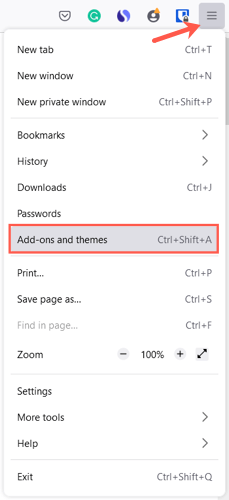 Firefox tarayıcı ayarlarınızın temalar bölümüne kolayca erişmek içinÜç SatırPencerenin sağ üstünde görüntülemek içinUygulama Menüsü. SeçmekEklentiler ve temalar.