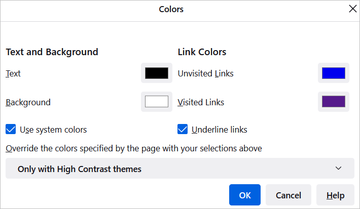 Yazı tipi stilini veya boyutunu değiştirmek veya metin ve web sayfası arka planları için Firefox'un varsayılan renklerini geçersiz kılmak için ayarlara gidin.