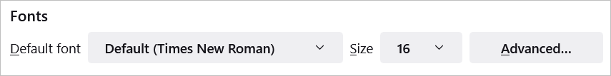Sonra seçinGelişmişOrantılı, Serif, Sans-Serif ve Monospace yazı tipleri için belirli yazı tipi stilleri ve boyutları seçmek. Minimum yazı tipi boyutu da seçebilirsiniz.