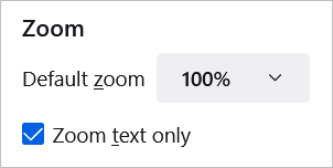 Varsayılan bir zoom seçmek için geri dönünUygulama Menüsü>Ayarlar>Genel. İçindeDil ve görünümbölüm, açılır kutuyu kullanınVarsayılan Zoomboyut. İsteğe bağlı olarak, bu kutuyu kontrol ederek yalnızca metni yakınlaştırabilirsiniz.