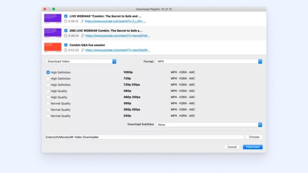 Gibi bazı uygulamalar4K Video İndirici, abone olduğunuz kanallardan otomatik olarak video indirebilir ve toplu indirme listesi ve kanal içeriği. Ancak, bunun gibi YouTube videolarını indirmek şirketin hizmet şartlarına aykırıdır.
