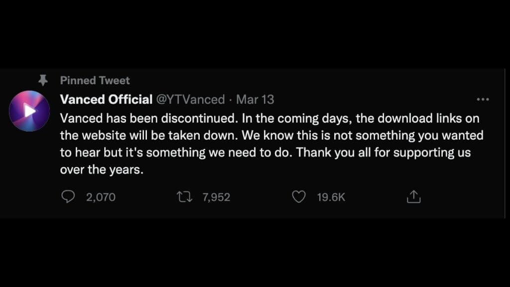 Yine de APK dosyasını indirebilir ve uygulamayı kullanabilirsiniz, ancak artık korunmuyor. Bu, YouTube bir şeyleri değiştirdiğinde gelecekte bir noktada çalışmayı bırakacağı ve yazılımı güncelleyecek kimse olmadığı anlamına gelir. Bu nedenle, yukarıda tartışılan diğer uygulamalardan birini kullanmanızı şiddetle tavsiye ediyoruz.