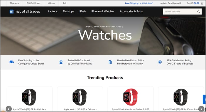 Mac of All Trades, yenilenmiş Apple ürünleri için bir toplayıcıdır. Başka bir deyişle, birden fazla satıcıdan yenilenmiş Apple Watch'u listeliyorlar. “Fabrika mühürlü, mükemmel, çok iyi ve iyi” arasında seçim yapabilirsiniz. Ürünleri koşullara göre nasıl filtreleyebileceğinizi sevdim.