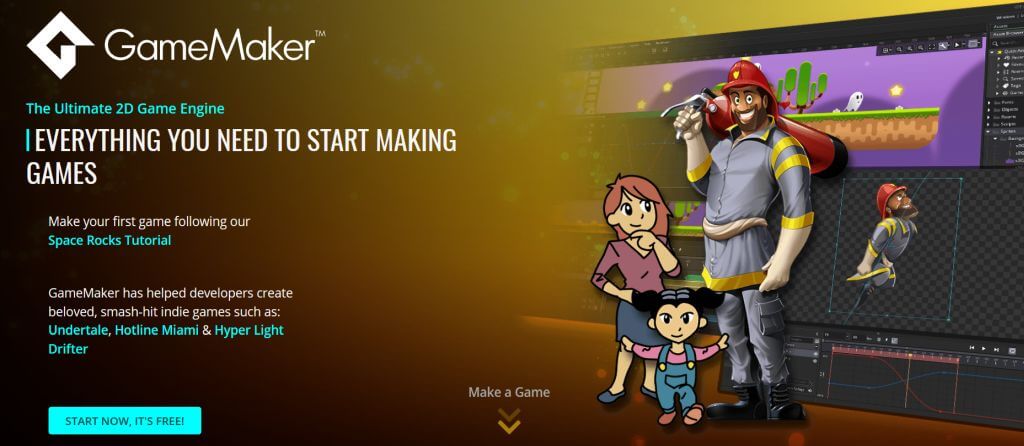 Gamemaker Studio, küçük oyun geliştirme bilginiz olsa bile 2D oyunlar oluşturmak için müthiş. Bu program, oyununuzun her yönünü kolayca düzenlemenize olanak tanır ve tam olarak öngördüğünüz gibi yapar. Kodlama bilgisi gerekmez. Bununla birlikte, programın sadeliğinden aldanmayın - Indie Studios bunu Undertale, Hotline Miami, Forager ve daha fazlası gibi büyük beğeni toplayan oyunlar yaratmak için kullandı.