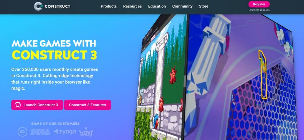 Construct 3, Sega, Zynga, EA ve daha fazlası gibi şirketler tarafından kullanılan harika bir programdır. Esas olarak Android veya iOS için mobil oyunlar oluşturmak için kullanışlıdır, ancak masaüstü uygulamaları geliştirmek için de kullanılabilir. Kesinlikle programlama bilgisi gerekmeyen 2D oyunlar oluşturmak için kullanılabilir. Ancak, isterseniz JavaScript programlama ile uğraşabilirsiniz.