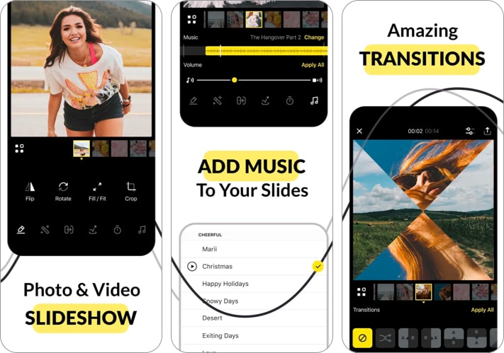 Şimdiye kadar, hiçbir zaman slayt gösterisi yapmaya başlamanızı sağlayabilecek bir dizi şaşırtıcı uygulama yaşadık. Ancak bugün, listemizi bir patlama ile sonuçlandıracağız. Bu doğru. Kesintisiz ve kullanıcı dostu bir arayüzle birlikte, fotoğraflarınızı zahmetsizce çarpıcı slayt gösterilerine dönüştürmenizi sağlayan Fotoğraflara Müzik Ekle.