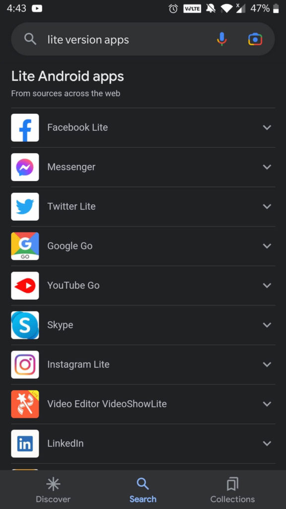 Facebook ve Twitter gibi popüler uygulamalar, uygulamalarının “Lite” sürümü olarak bilinen hafif bir sürümünü sunar. Bu hafif sürümleri kullanarak Android telefonunuzu hızlandırabilir ve akıllı telefonunuzun performansını büyük ölçüde artırabilirsiniz. Lite sürüm uygulaması kullanarak, cihazınızın kaynaklarındaki gerginliği azaltırken, uygulamanın normal sürümüyle aynı işlevselliğin tadını çıkarabilirsiniz. Bu nedenle, Android telefonunuzu hızlandırmak istiyorsanız, en sevdiğiniz uygulamaların Lite sürümüne geçmeyi düşünün.