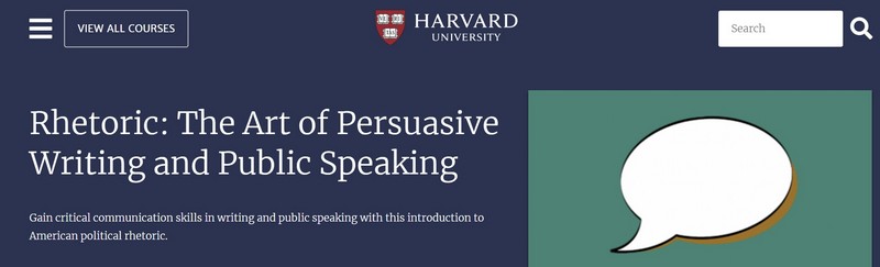 Şimdi, bir yazar veya halka açık bir konuşmacıysanız, Harvard'daki retorik ücretsiz çevrimiçi kursuna göz atmak isteyebilirsiniz. Bu ders, yazılı veya dijital medyada ikna edici içerik oluşturmak için yazılı ve topluluk önünde konuşmada retorik teknik hakkında derinlemesine bilgi edinmenize yardımcı olmak için tasarlanmıştır.
