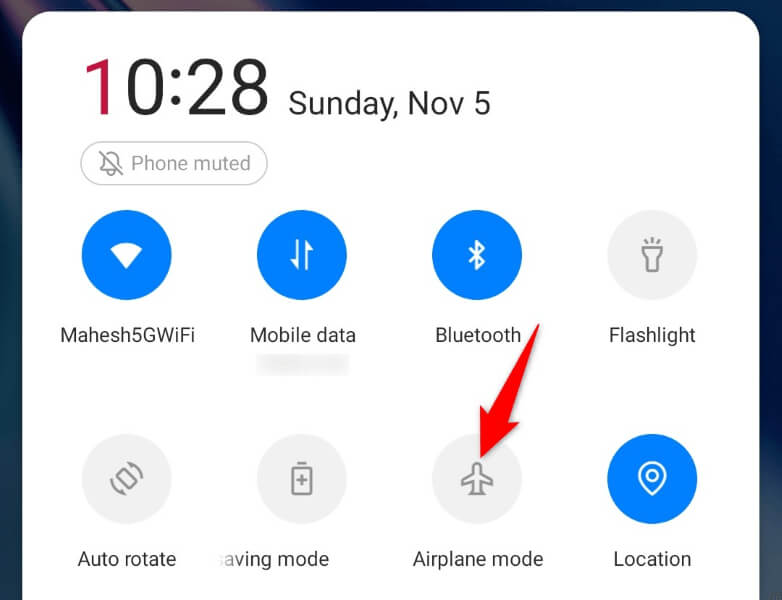 Kod sorununuzu düzeltmenin bir başka yolu da telefonunuzun uçak modunu açmak ve geri dönmektir. Modu etkinleştirmek telefonunuzdaki tüm ağ bağlantılarını kapatır ve modu devre dışı bırakmak bu bağlantıları geri yükler. Bu, telefonunuzdaki bağlantı sorunlarını düzeltmeye yardımcı olur.