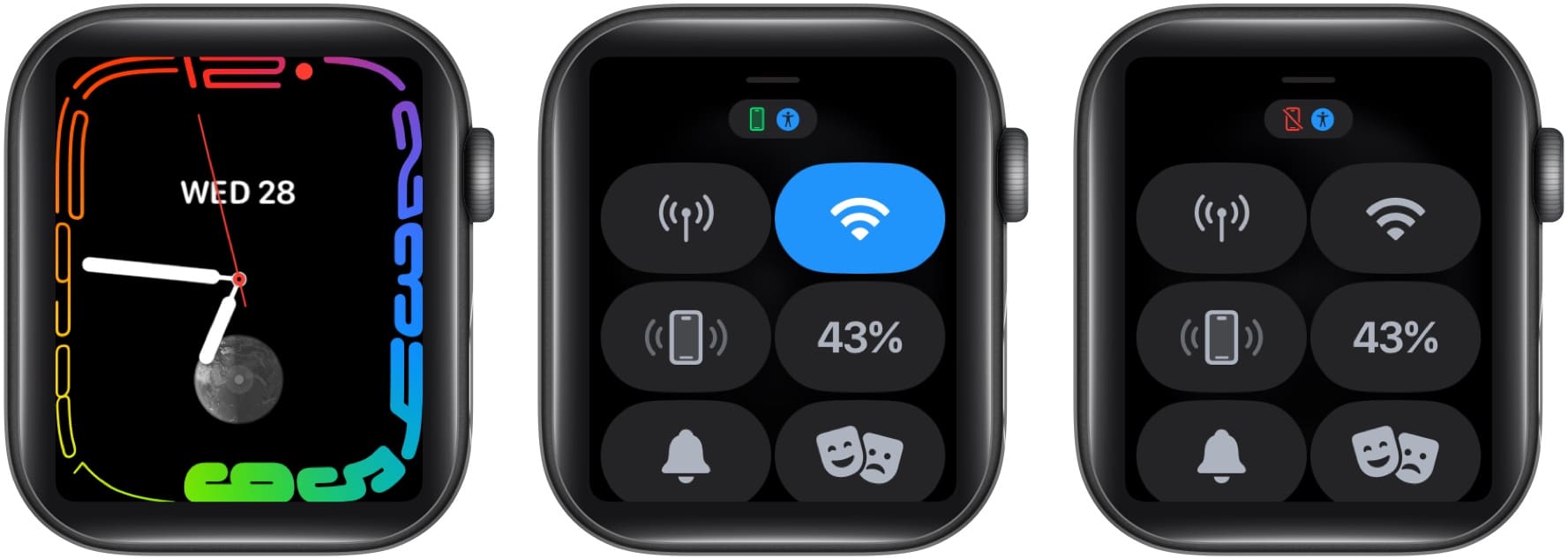Apple Watch'taki mikrofonlarla ilgili sorunlarla karşılaşıyorsanız, aramalar üzerinde çalışmıyorsa, ilk etapta iPhone'a bağlı olup olmadığını kontrol etmeniz gerekir. Bunu yapmak için: