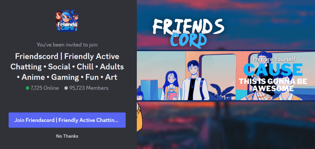 FriendsCord, gerçekten arkadaş edinmeye adanmış bir Discord sunucusudur. Listedeki bazı sunucular kadar büyük ve popüler olmayabilir, ancak burası dünyanın her yerinden en eğlenceli ve tutkulu insanlarla tanışacağınız yer. Sohbete katılın ve aklınıza gelen her şeyi tartışın. Ama kibar olun ve başkalarının konuşmalarını kesmeyin.