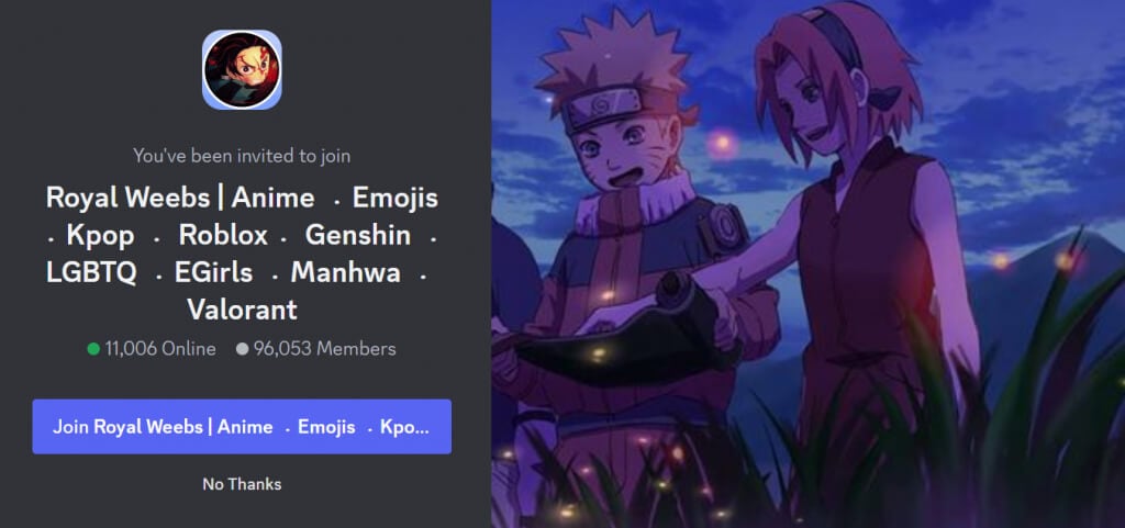 Bu Discord sunucusu bol miktarda eğlenceli ve renkli emoji ve aylık nitro hediyeleri var. Moderatörler her zaman mevcut, eğlenceli ve yardım etmeye hazır. Sohbet aktiftir ve isterseniz her zaman bir sesli sohbet veya video görüşmesine katılmayı tercih edebilirsiniz. Ancak, teknik olarak yaş sınırı olmamasına rağmen, Royal Weeb'in çoğu genç ve genç yetişkindir. Bu sunucu herkesin çayı olmayacak.