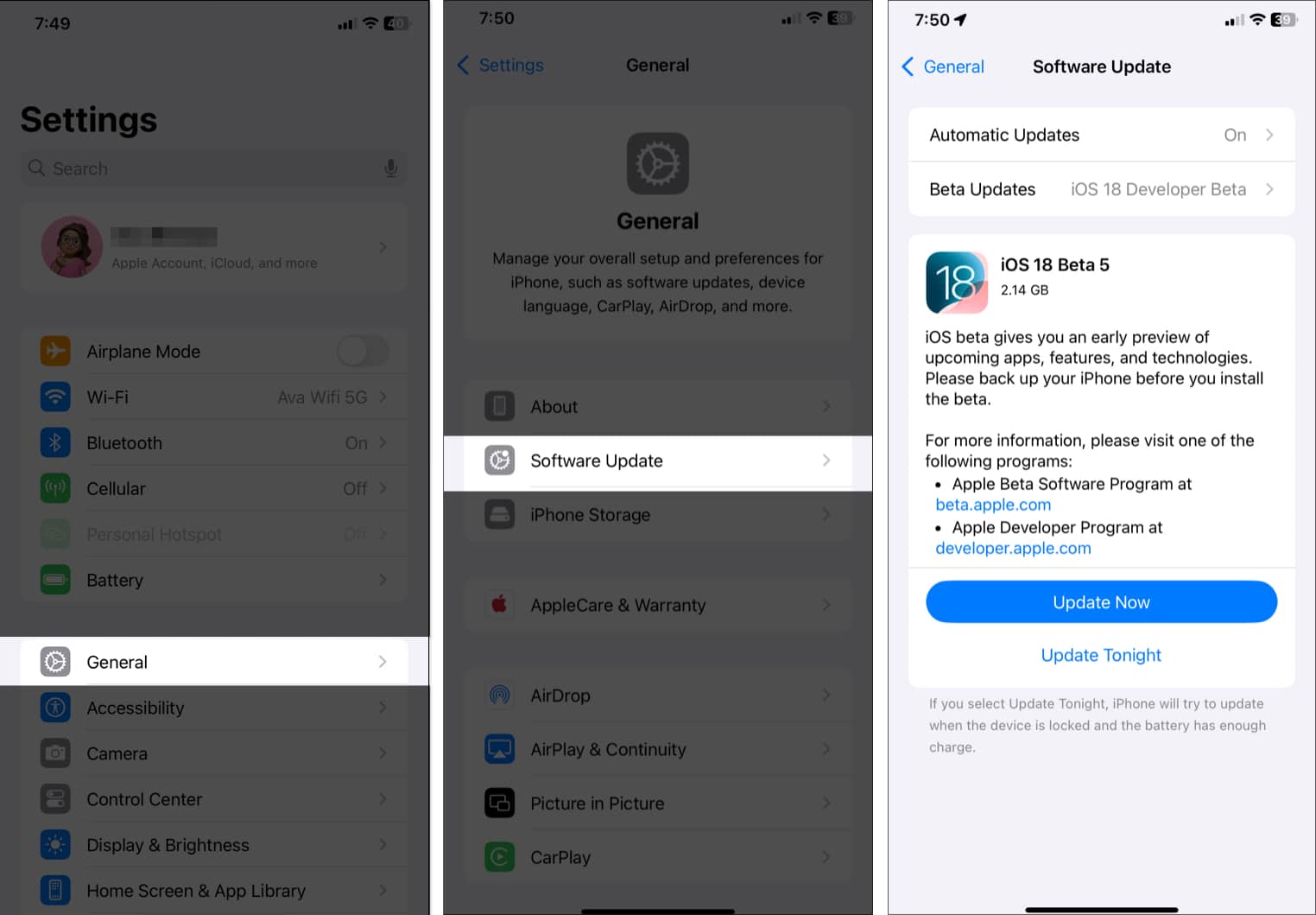 Basitçe, başlatınAyarlaruygulama ve seçinGenelmenü. Burada seçinYazılım GüncellemesiVe muslukŞimdi GüncelleHerhangi bir yeni iOS sürümü varsa.