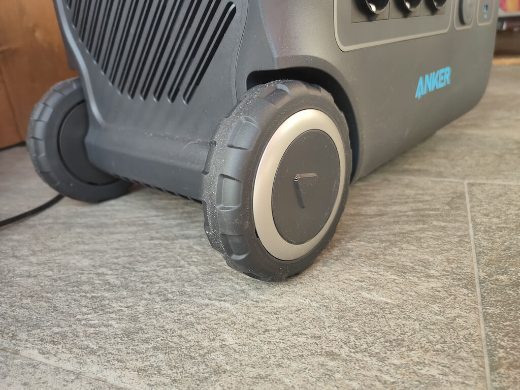Bu taşınabilir bir elektrik santrali olsa da, gördüğüm en büyüklerden biri. 67 kilo ağırlığında, şüphesiz ağır, ancak Anker, hareket etmeyi kolaylaştırmak için düşünceli özellikleri entegre etti. Bir bavul gibi, Powerhouse 767, yandan uzanan bir teleskop kolu ile donatılmış ve 4.72 inç tekerlek çiftine yuvarlanmanıza izin verir.