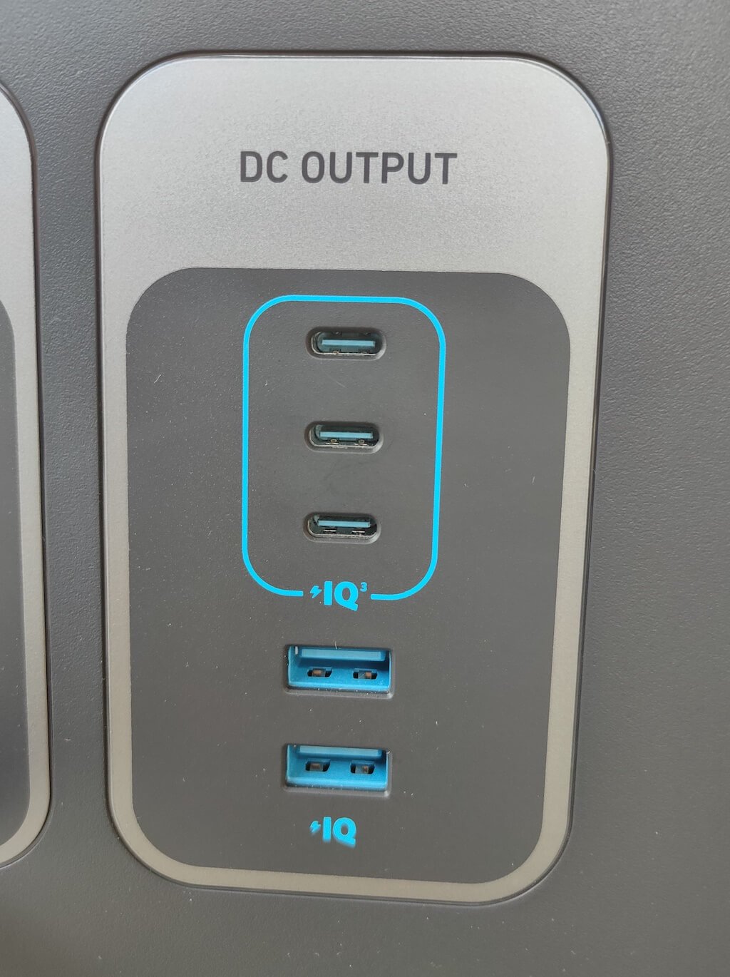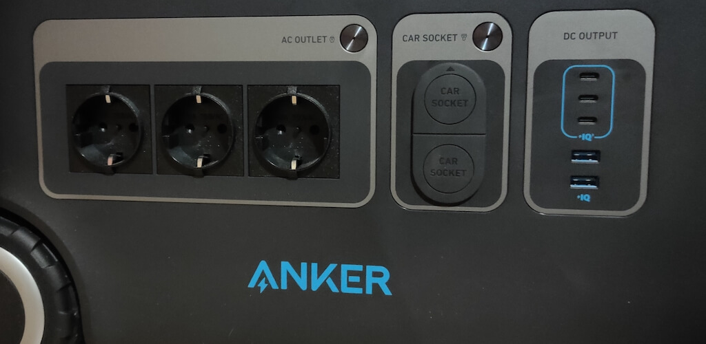 Ön panelde, cihazlarınız için çeşitli şarj seçenekleri sunan çok çeşitli çıkış ve bağlantı noktası bulacaksınız. Üç AC çıkışı (ABD versiyonunda) vardır, Rekreasyonel Araçlara (RV'ler), bir çift 12V araba soketi çıkışı, üç USB-C bağlantı noktası ve iki USB-A bağlantı noktası için özel olarak tasarlanmış bir TT-30R çıkışlı dört AC çıkışını bulacaksınız.