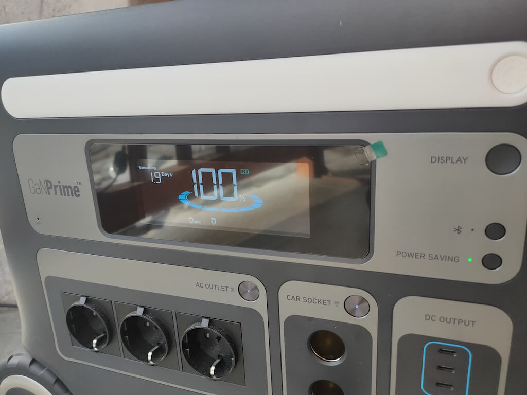 Elektrik istasyonu, giriş ve çıkış gücü, kalan pil kapasitesi ve tahmini şarj ve deşarj süreleri gibi temel bilgileri gösteren açık bir LCD ekrana sahiptir. Ayrıca alarmlar görüntüler ve eko güç tasarrufu modunun ne zaman etkin olduğunu gösterir, bu da gücü korumak için 15 dakikalık hareketsizlikten sonra tüm soketleri otomatik olarak kapatır.