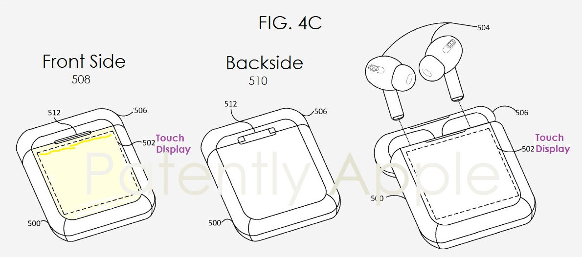 Patent (aracılığıylaPatifikasyon yapmak), “Bir Kulaklık Kılıfı ile Cihazlar, Yöntemler ve Grafik Kullanıcı Arayüzü Etkileşimleri” başlıklı, Eylül 2021'de Apple tarafından açıldı ve geçen hafta ABD Patent ve Ticari Marka Ofisi tarafından yayınlandı. Patent, böyle bir tasarım için çeşitli düzenlemelerin ayrıntılı tasvirlerini sunar, airpod görüntüleri ve kasanın cephesinde bir dokunmatik ekran ile tamamlanır.
