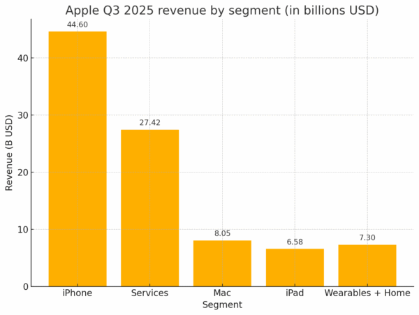Hizmetler bir kez daha ağır kaldırma yaptı. Gelir, App Store satışları, Apple TV+, Apple Music ve genişleyen iCloud+ katmanları tarafından yönlendirilen yüzde 13 artarak 27.42 milyar dolara yükseldi. Cook, Apple Pay günlük işlemlerin her yıl iki katına çıktığını ve şirketin şimdi1,25 milyar ücretli abonelik, on iki ayda 150 milyon artış. Segmentin yüzde 72'si brüt marj kalkanları, donanım döngülerinden genel karlılığını koruyor ve Wall Street için stratejik odak noktası olmaya devam ediyor.