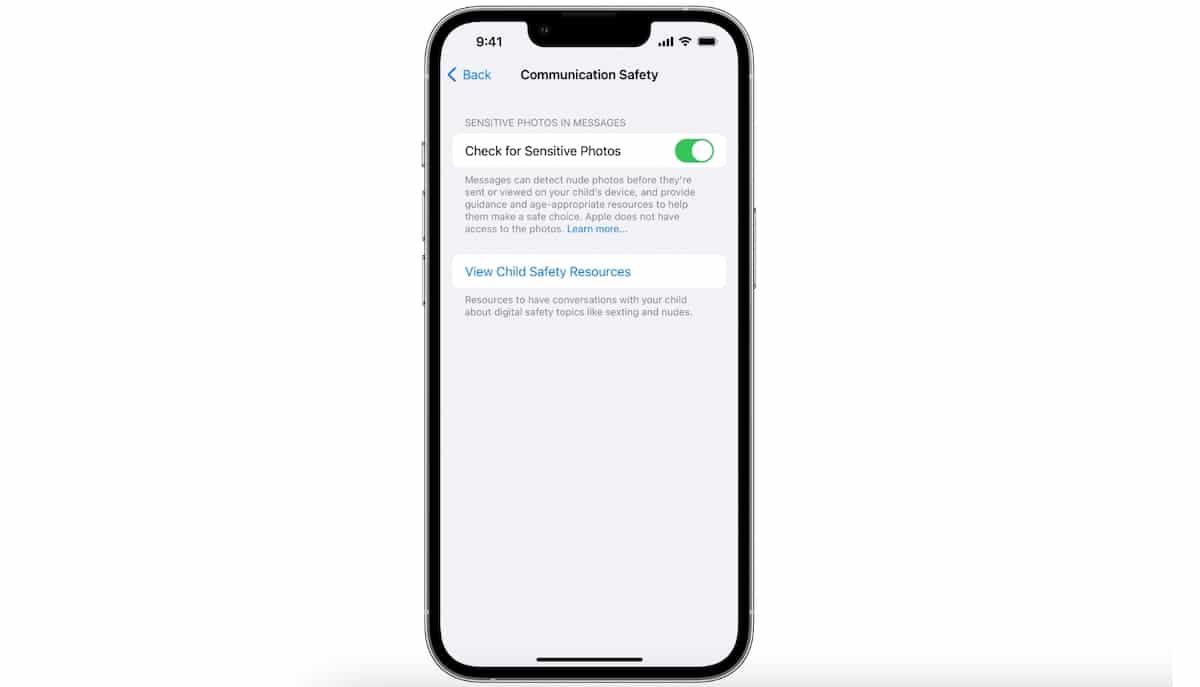 Mesajlar uygulamasının, çıplaklık için bir görüntüyü (alınan veya gönderilen) analiz etmek için cihaz içi makine öğrenimini kullanarak. Çıplaklık tespit edilirse, Mesajlar uygulaması fotoğrafı bulanıklaştırır ve yardım almak için hataları ve yaşa uygun kaynakları olmadığı gibi rehberlik sağlar.