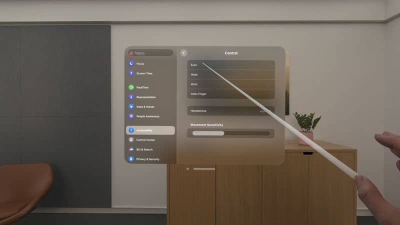 Kullanıcıların Vision Pro'yu baş, bilek veya işaret parmağıyla kontrol etmelerini sağlayan bir özellik. Bu, ellerini kullanmakta zorluk çeken veya göz izlemeyi kullanamayan kullanıcılar için yararlı olabilir.