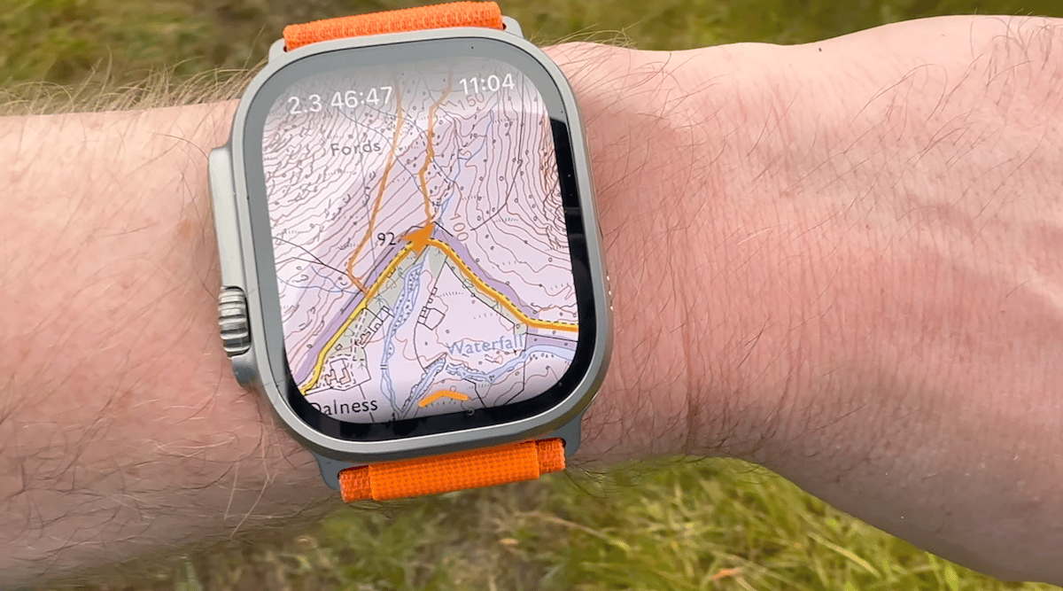 Topografik etkileşimli harita mevcut konumunu gösterdi ve yürüyüş pistini bulmasına yardımcı oldu. Tipik bir spor saatinin navigasyonu, Apple Watch Ultra'nın navigasyon detayları ve kullanıcı arayüzü ile karşılaştırma değildir.