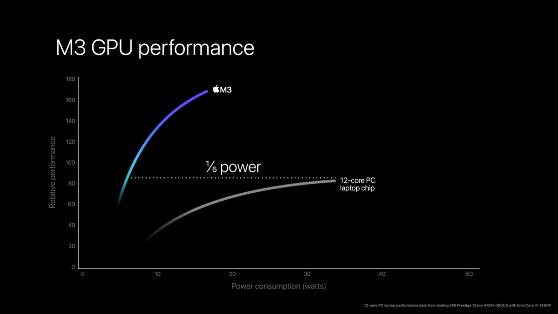 ElmaiddialarM3 cips ailesinin, daha küçük boyutları ve TSMC'nin 3nm sürecinin kullanımı sayesinde M2 ailesinden daha fazla güç verimli olması. Bu, M3 yongalarının daha az güç kullanırken aynı performans seviyesini sağlayabileceği anlamına gelir, bu da M3 cipsleri tarafından desteklenen Mac'ler için daha uzun pil ömrü ile sonuçlanacaktır.