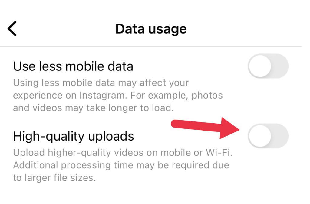 Gidip gelmekInstagram ayarları>Hesap>Veri kullanımısonra geçiş yapYüksek kaliteli yüklemelerAçık.