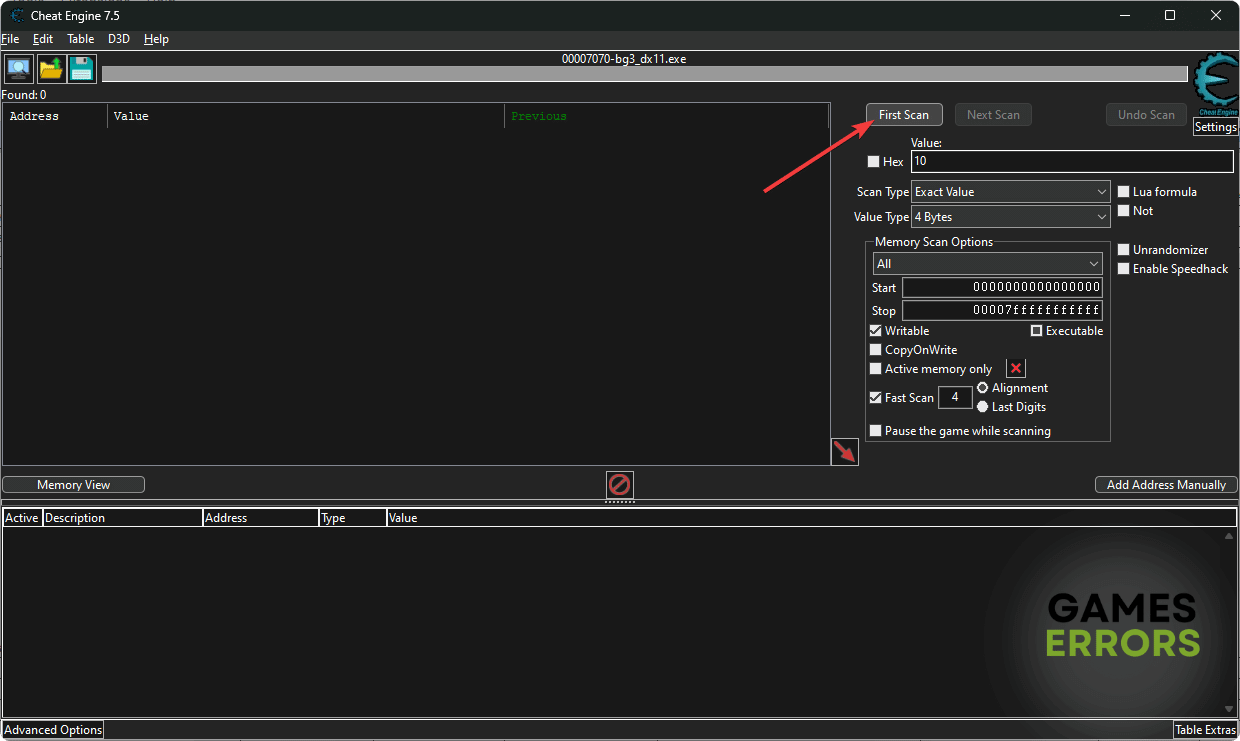 5. Şimdi, değiştirmek istediğiniz oyunda, hile motoruna yazmak ve yazın ve ilk taramaya tıklayın.
