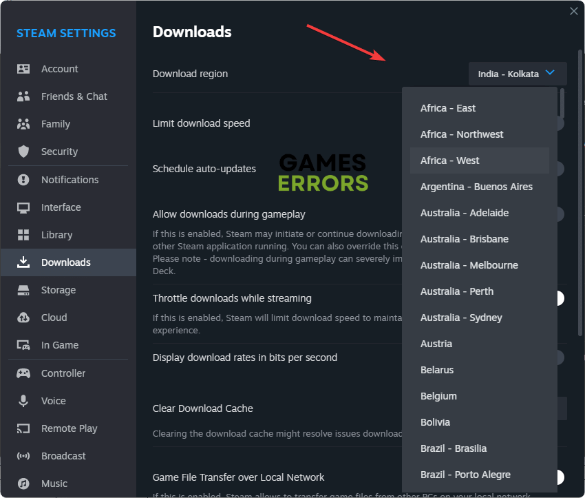 Steam'de farklı bir indirme bölgesi kullanmak, Baldur'un Gate 3 yavaş indirme hız problemini çözmek için en başarılı yöntemdir.