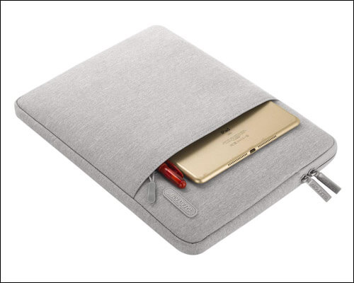 Temel belgelerinizi, şarj cihazınızı ve diğer küçük şeyleri tutabileceğiniz büyük bir cebe sahiptir. Ayrıca, kredi kartlarını taşımanıza izin vermek için küçük bir kart yuvasına da sahiptir. Dahası, iPad Air 3 için Moko Sleeve de siyah, kahverengi ve gül altın gibi güzel görünümlü renklerle geliyor.