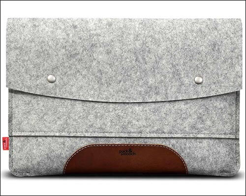 Pack & Smooch'un bu kol kılıfı estetik bir tasarıma sahiptir. En kaliteli sebze tabaklanmış deri ve yün keçe ile üretilmiştir. Kasada, şarj cihazı, kulaklık vb. Gibi şeyleri saklayabileceğiniz ekstra bir cebe sahiptir.