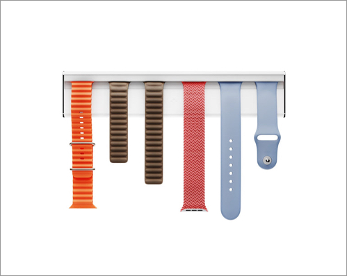 Tüm boyut ve stilleri barındıran altı Apple Watch bandı güvenli bir şekilde tutar. Tasarım, Apple Watch konektörünü taklit ederek bantların hızlı ve kolay bağlanmasını ve kaldırılmasını sağlar.