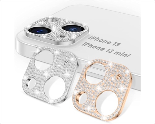 Goton Bling, iPhone 13/13 Mini'ye ışıltılı elmas kristal metal lens koruyucusu ile belirgin bir görünüm kazandırır. Genel olarak benzersiz bir görünüm için, parlak kalkanın her tarafına ve lens halkalarının etrafına elmas yerleştirdiler. Yani, elmas tarzı bir iPhone geri seviyorsanız, bu idealdir.