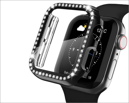 Apple Watch Serisi 6,5,4 ve SE sürümleri için tasarlanan durum, mükemmel bir işçiliğin mükemmel bir örneğidir. Recoppa iwatch vakası sadece kadınlar içindir ve üstünde elmas tarzı işler içindir. Bling modası, iWatch'ınızın dokunma yeteneğini kısıtlamayan ince şeffaf bir ekran koruyucusu eşlik ediyor. 38mm, 42mm, 40 mm ve 44mm ekran boyutu varyantları için mevcut olan, davanız için 12 aylık kalite garanti hizmeti sunar.
