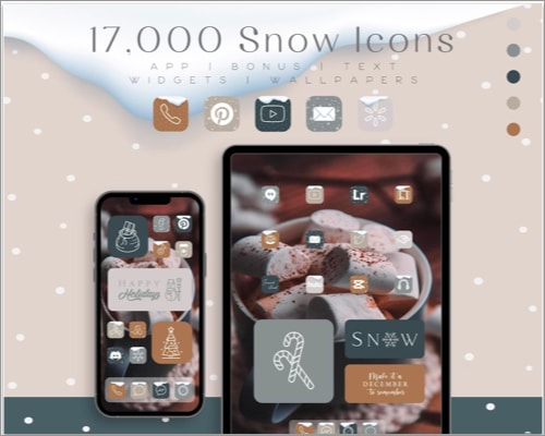 Paket ayrıca, grafik ve fotoğraf duvar kağıtları da dahil olmak üzere Noel ve kış temaları için 490+ ücretsiz duvar kağıtları içerir. Peki ne bekliyorsun? Biraz tatil tezahüratını eklemek veya Noel'e olan sevginizi ifade etmek için mükemmel olan iPhone'unuz için en tatlı Noel simgelerini kaydedin.