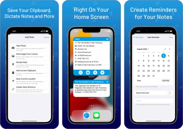 Uygulama ayrıca telefonunuzda haritalar ve takvim gibi diğer uygulamalarla entegre olur. İster kaydedilmiş bir adres aracılığıyla haritadaki mesafeyi kontrol edin, ister kırpmanızdan belirli bir tarihte bir etkinlik ayarlayın, snipnotların her zaman bazı yararlı önerileri vardır.