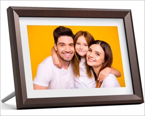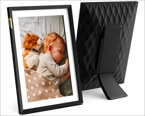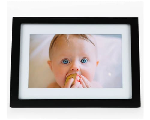 Uygun bir fiyata yüksek kaliteli bir çerçeve arıyorsanız, Brookstone Photoshare dikkate almak için harika bir seçenektir. Görüntüleri 1280 × 800 piksel çözünürlükte görüntüleyebilen 10.1 inçlik bir ekrana sahiptir ve kullanıcıların doğrudan akıllı telefonlarından görüntüleri paylaşmalarını sağlar. Gri tasarıma sahip bu premium siyah ahşap çerçeve, 8GB dahili depolamasında 5.000'den fazla görüntü tutabilir.