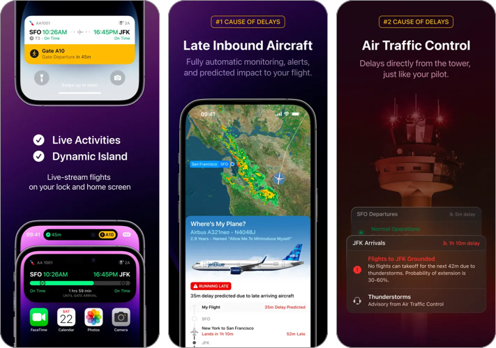 Sık gezginler için Flighty bir cankurtarandır. Doğrudan dinamik ada ve kilit ekran widget'larında en hızlı canlı uçuş güncellemelerini sunar. Telefonunuzun kilidini açmadan geçit değişiklikleri, gecikmeler, iptaller, program değişiklikleri, varış süreleri vb. Hakkında bilgi sahibi olabilirsiniz.