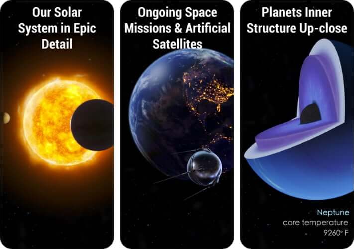 Güneş sistemini meraktan keşfetmek istiyorsanız, Solar Walk 2'ye göz atmanızı tavsiye ederim. Uygulama, gezegenler, uydular, gezegen atmosferleri, ay ve güneş gibi önemli bileşenlerin göz alıcı temsillerine sahip ayrıntılı bir güneş sistemi modeline sahiptir.
