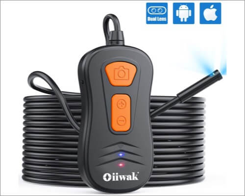 Oiiwak, 270 derecelik bir görünüm elde edebilen bir çift lensli kamera tasarladı. Çift endoskop iPhone kamerası, dar alanları aramak için mükemmeldir; Ancak, kamerayı çevirmeden çevreyi kolayca görüntüleyebilirsiniz.